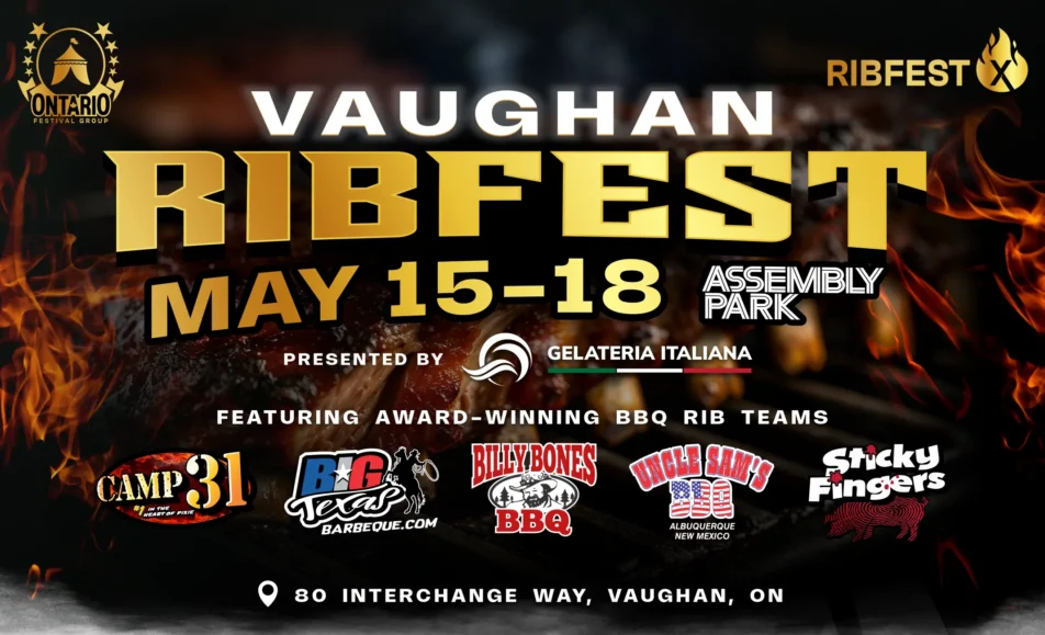 The 4th annual Vaughan Ribfest X 2026 returns to Vaughan Victoria Day Long Weekend. The Vaughan Ribfest is presented by Gelateria Italiana and will take place at Assembly Park, Vaughan. Produced by Ontario Festival Group.